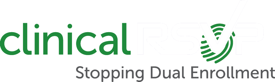 clinicalRSVP is the original dual enrollment prevention service provider and the first to receive a patent for the technology (2009). If you use dual enrollment prevention methods provided by other vendors that are similar to those described by clinicalRSVP and are concerned you may be in violation of the patents listed above, please contact us for additional information.